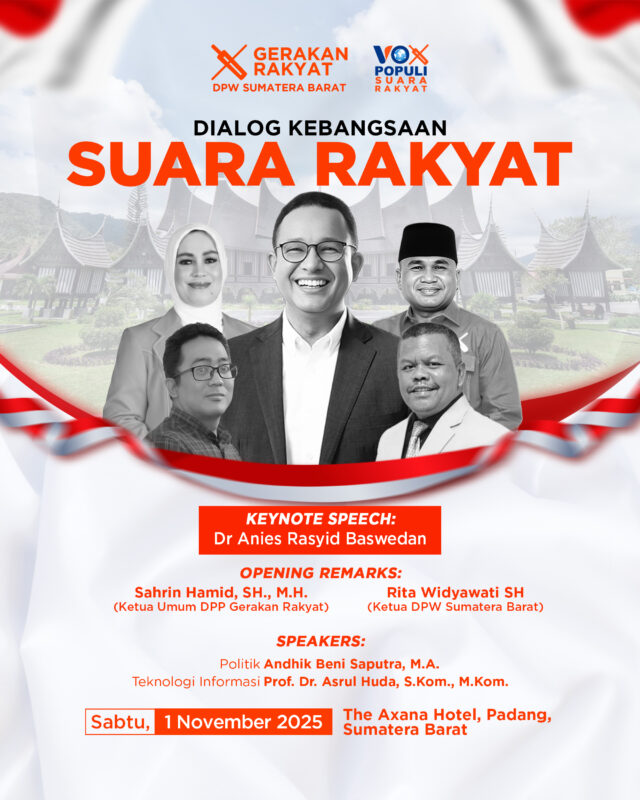 Gerakan Rakyat Gelar Pelantikan dan Vox Populi di Padang, Anies Hadir sebagai Pembicara Utama